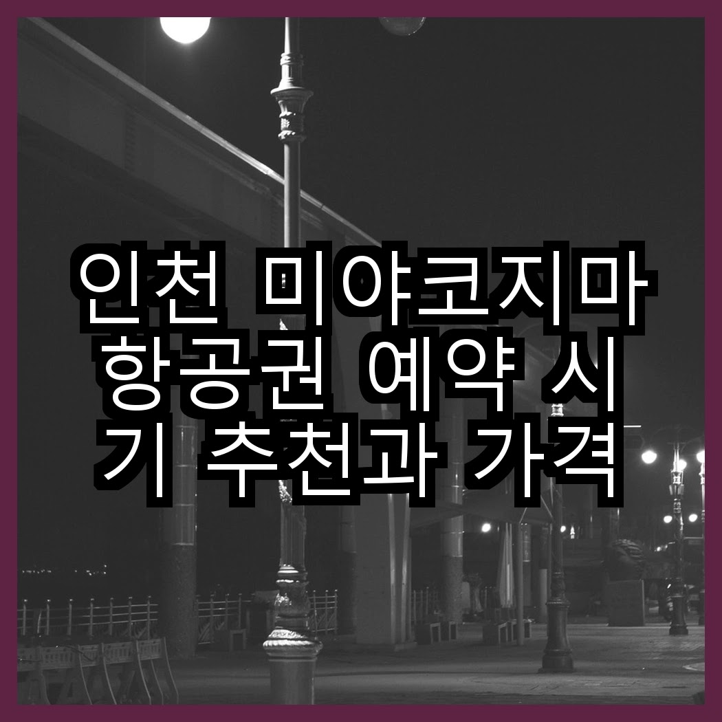 이 글에서는 인천 미야코지마항공권 예약에 대한 유용한 정보들을 살펴볼게요. 각 항목에서는 예약 시기와 가격 비교, 특가 확인 방법 등 실질적인 팁을 소개할게요. 인천 미야코지마항공권 예약을 고려하고 있다면 꼭 확인해 보세요!